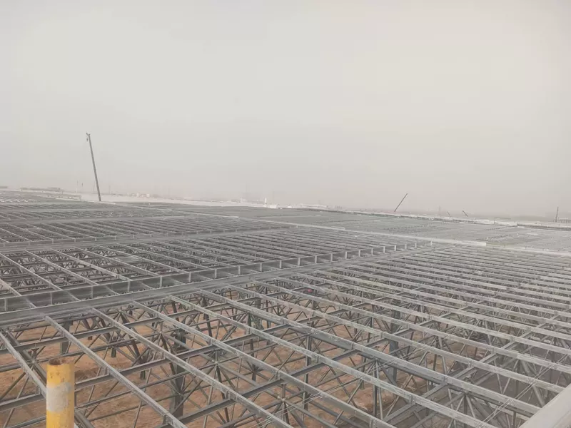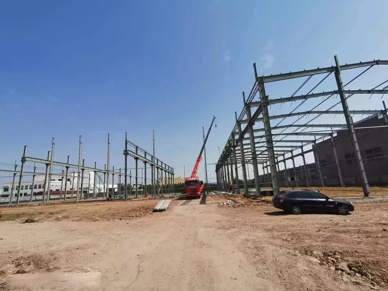 Principalmente composto por columnas de aceiro, vigas de aceiro, claves de aceiro, etc., que se montan nunha estrutura de cadros mediante soldadura, conexións atornilladas, etc.
