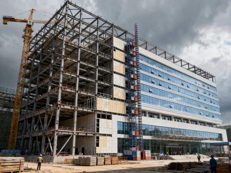 • Edificio hospitalario metálico de gran altura prefabricadoEdificio hospitalario metálico de gran altura prefabricado