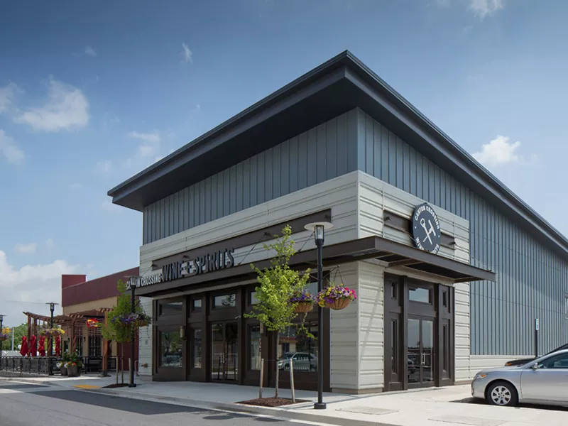 Edificio de restaurantes metálicos