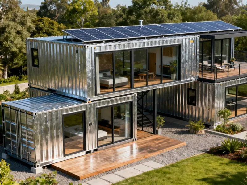 As casas de contedores prefabricadas de varios pisos son edificios con contedores como compoñentes principais. Estes recipientes están feitos de material de aceiro, que é forte e duradeiro e pode adaptarse a calquera clima. As casas contenedores son unha nova tendencia na arquitectura moderna. Están prefabricados na nosa fábrica e despois instálanse en calquera parte do mundo. O aceiro é un material ecolóxico e reciclable. Os veciños tamén poden optar por instalar paneis solares fotovoltaicos na parte superior das súas casas para lograr unha vida realmente baixa en carbono. O deseño dos edificios de contedores é flexible e pódese deseñar e modificar segundo as ideas do residente.