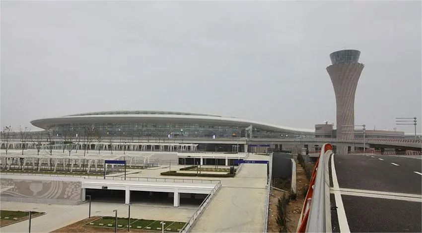 Unha gran pasarela internacional a nivel de 4E a 30 km do centro da cidade. A expansión da fase II abarca instalacións aeroportuarias, control de tráfico aéreo, subministración de combustible e bases para Shandong Airlines e China Eastern Airlines.