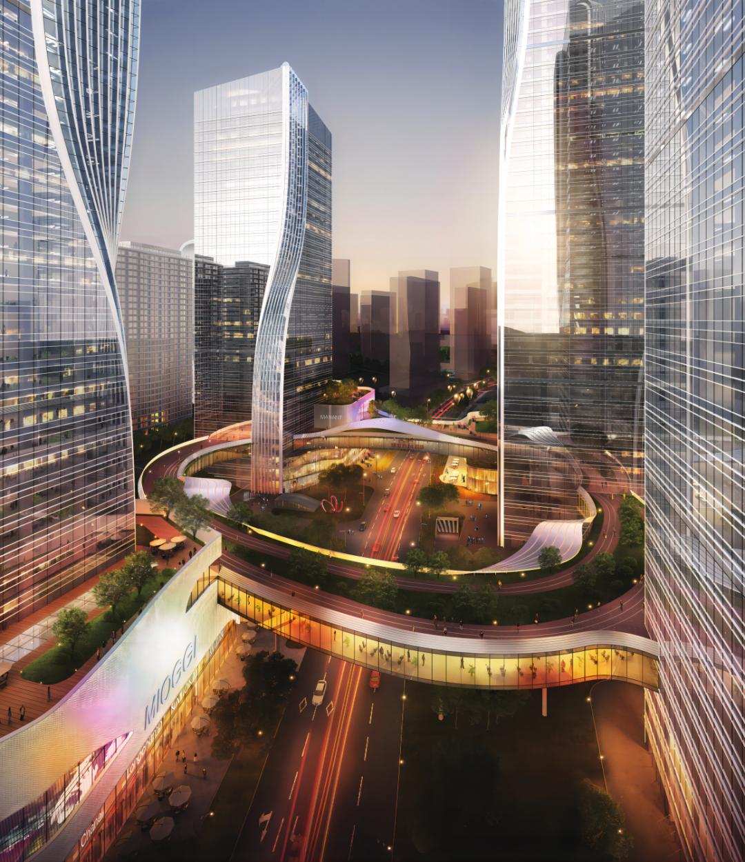 Este complexo de dúas torres abarca 57 hectáreas cunha superficie total de 220.000 metros cadrados, integrando oficinas, hoteis, venda polo miúdo, comedor e entretemento. As súas paredes de cortina de vidro, adornadas con máis de 7.200 metros de tiras de luz sincronizadas, crean patróns dinámicos en case 11.000 metros cadrados, proporcionando un poderoso impacto visual.