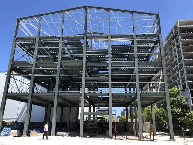 2. Deseño lixeiro e flexible Unha das vantaxes significativas dos almacéns de marco de aceiro é a súa natureza lixeira en comparación coas estruturas de formigón tradicionais. Esta característica reduce a carga na base, permitindo unha maior flexibilidade no deseño e adaptabilidade a varios terreos. A natureza lixeira tamén contribúe a reducir os custos de construción e o transporte e a instalación máis sinxelos de compoñentes prefabricados.