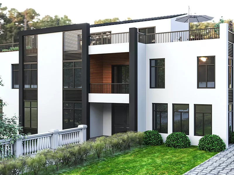 ● Eficiencia enerxética: a casa da vila está deseñada con funcións de aforro enerxético, como paredes e tellados illados, fiestras eficientes enerxéticamente e opcións de integración de paneis solares, reducindo o consumo de enerxía e as facturas dos servizos públicos.