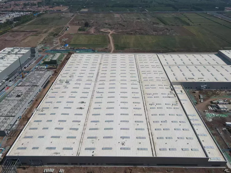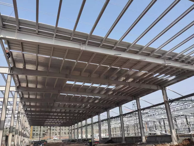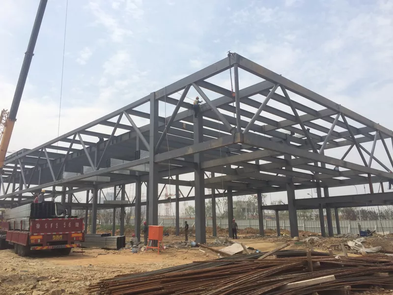 Estrutura lixeira de alta resistencia: o almacén de armazón de aceiro ten alta resistencia e baixo peso, logrando facilmente unha estrutura "lixeira" e reducindo a carga na base. Ao mesmo tempo, o aceiro ten unha excelente resistencia á tracción, compresión e cizalladura, polo que é adecuado para o deseño de almacéns de gran tamaño e altura.