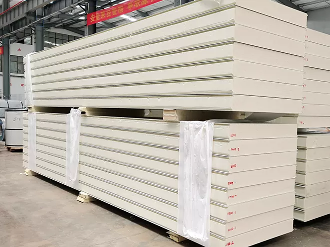 Os paneis sándwich de PU están prefabricados e veñen en tamaños estándar, o que facilita a instalación. Pódense cortar e encaixar facilmente entre si, reducindo a necesidade de realizar traballos de construción extensos no lugar. Isto non só aforra tempo, senón que tamén minimiza os custos laborais e os residuos de construción.