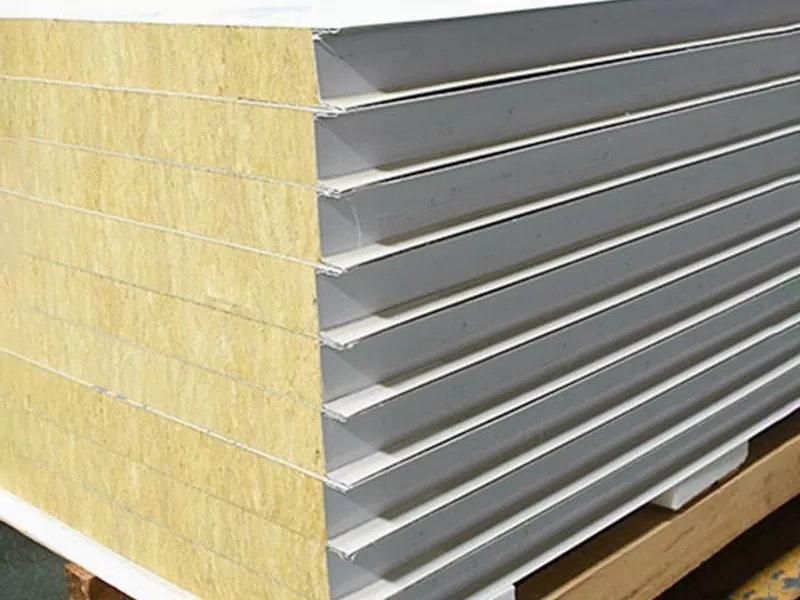 O núcleo do panel sándwich está composto por Rockwool, un material de illamento de fibra mineral coñecido polas súas excelentes propiedades de illamento térmico e acústico. Rodeando este núcleo hai dúas capas de chapas metálicas, normalmente de aceiro ou aluminio, que proporcionan rixidez estrutural e protexen o illamento dos elementos externos.