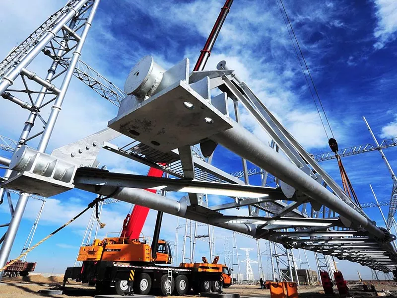 ● Erección: os membros do aceiro e os compoñentes son erguidos e montados no lugar, empregando grúas e outros equipos pesados.